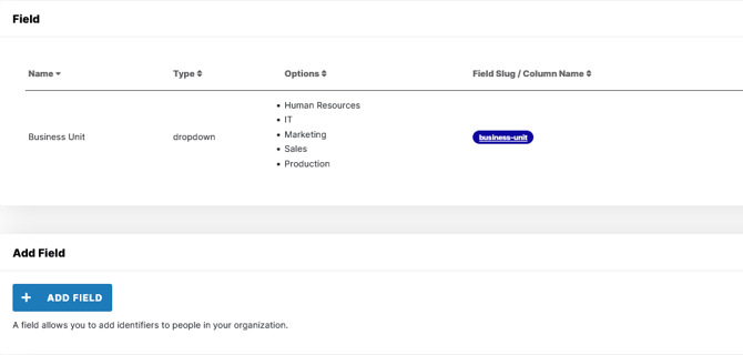 - Name the Field (e.g. Business Unit, Division, Department, Level etc.)