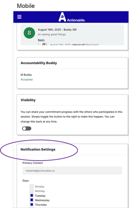 You might want to change your notification days, time, or delivery method after you've made your commitment. It's easy! Read on.