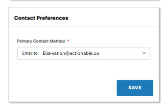 - Under "Primary Contact Method" select your preferred option from the drop down - either email, text, or Whats App.