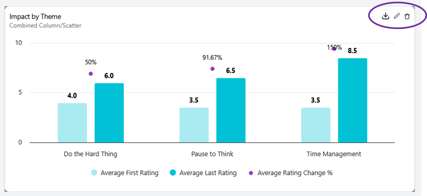 You have options on how you'd like show your data, to tailor it to your audience. Change from Themes to Program objectives, from Modules to Groups. (more options coming soon).
